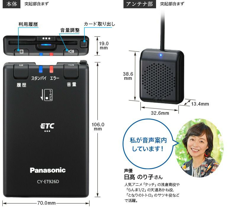 他の画像を見る 音声案内が聞き取りやすい、シンプルなETC車載器 パナソニック ETC車載器 CY-ET926D 新セキュリティ対応 12V/24V対応 普通車 大型車にも対応 シンプル ETC カード未挿入警告機能 利用履歴再生機能 音声案内機能搭載 当店特別価格 ¥ 8,936 税込 会員特別価格 ¥ 8,848 税込 カートに入れる お気に入りに登録する