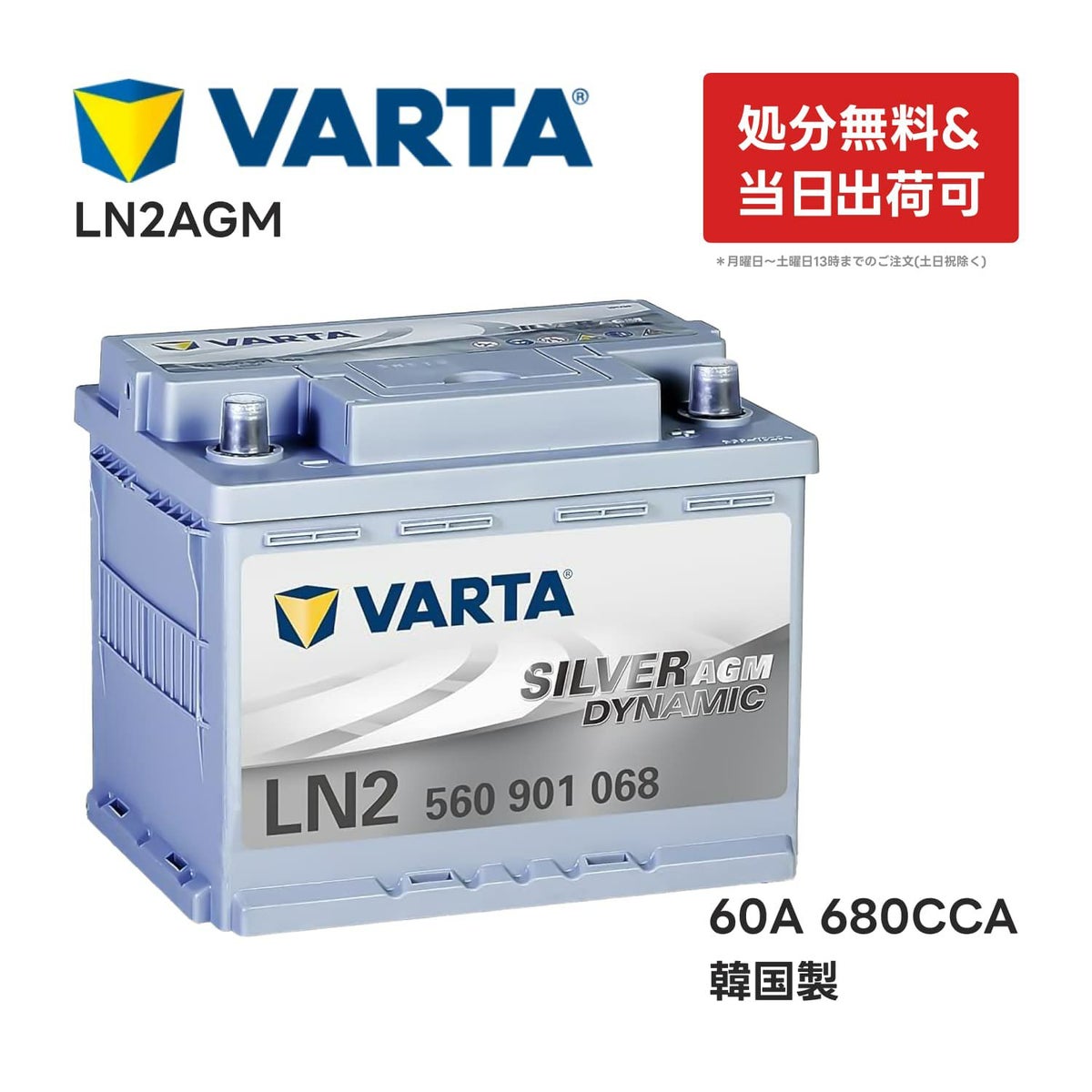 他の画像を見る 在庫有り 即納 VARTA AGM で脅威のコスパ VARTA LN2 AGM バッテリー 560 901 068 |バルタ 60A 680CCA LN2AGM 規格:L2 サイズ:W242mmD175mmH190mm欧州車用 高性能 シルバーダイナミック アイドリングストップ 車 カーバッテリー バッテリー本体 互換バッテリー:BOSCH BLACK-AGM BLA-60-L2 等 560901068 製造国:韓国 定価 ¥ 54,780 のところ 当店特別価格 ¥ 23,290 税込 会員特別価格 ¥ 23,057 税込 カートに入れる お気に入りに登録する