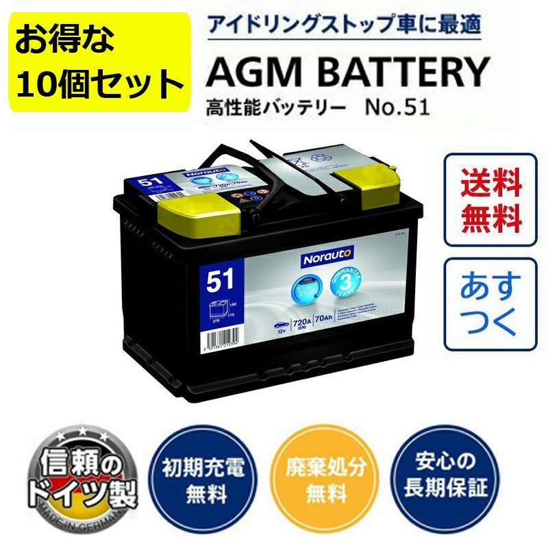 5. \お得な10個セット!/Norauto AGMバッテリー No.51 70Ah 720CCA 本体サイズ:長さ278mm×幅175mm×総高190mm LN3に互換 ドイツVARTA製