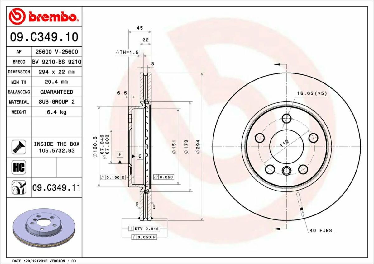 コストパフォーマンスを追求し、世界トップレベルのブレンボクオリティ 09.C349.11 ブレンボ ブレーキディスク ローター 左右セット フロント 2枚 ブレーキローター Brembo スタンダードタイプ 純正同等 ECE-R90 BMW F45 (2シリーズ ACTIVE TOURER) ミニ F55 F56 CONVERTIBLE クロスオーバー CLUBMAN