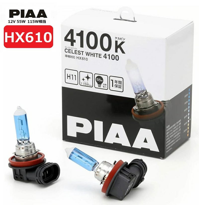 PIAAのハロゲンシリーズ4100KのCELEST WHITE(セレストホワイト)、H11 HX610 です。