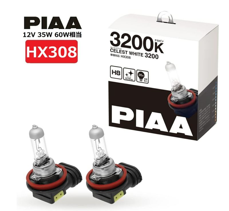 PIAAのCELEST WHITE(セレストホワイト)3200K、H8 HX308 です。