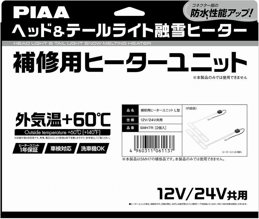 他の画像を見る ヘッドライトおよびテールライトに貼り付ける、融雪ヒーター。シンプルで有効性の高い融雪機能。 PIAA ヘッド&テールライト用 融雪ヒーター ユニット&外気温センサーハーネス【L型】 12V・24V共用 メーカー保証付き 洗車機OK 車検対応 2個入 SMH7 当店特別価格 ¥ 20,718 税込 会員特別価格 ¥ 20,511 税込 カートに入れる お気に入りに登録する