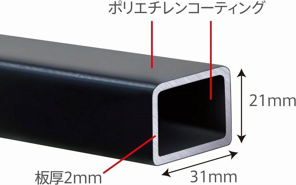 板厚2mm強度抜群のスチールバーを使用。耐荷重100kgを実現。 Terzo テルッツォ (by PIAA) ベースキャリア バー 1本入 スクエアバータイプ ブラック 147cm ※エンドキャップ[EA81]は別売 TP2 板厚2mm、31mm×21mm 重量1.9kg ポリエチレンコーティング防錆対策済み スチールバー