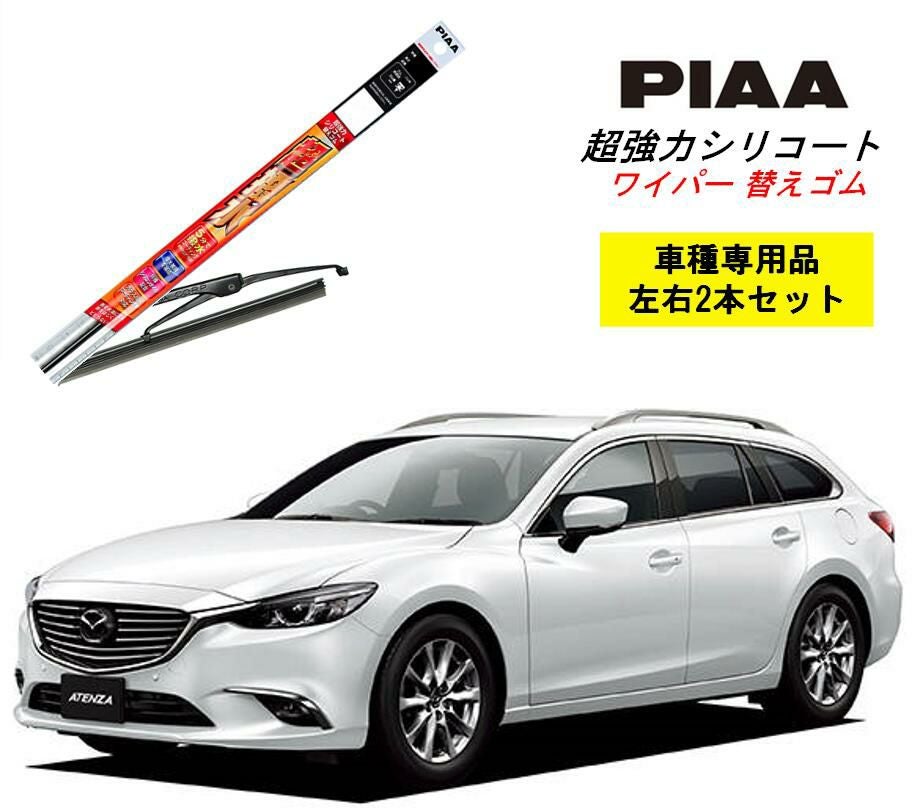 マツダ アテンザワゴン 用 ワイパー替えゴム 左右セットです PIAA ピア マツダ アテンザワゴン GJ2AW.GJ2FW.GJ5FW.GJEFW用 ワイパー替えゴム SLW60 SLR45 左右 2本 セット 運転席 助手席 2本セット 呼番 96 / 92 超強力シリコート 国産車 超撥水 シリコン ゴム はっ水 ゴム交換 カー用品 ビビリ音低減 クリア視界 拭き取り メール便