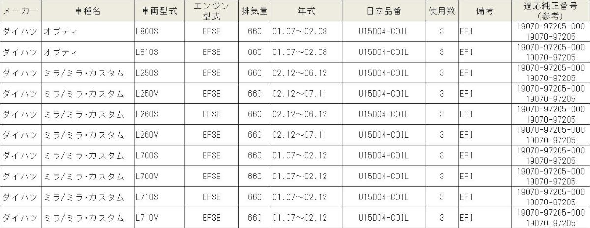 他の画像を見る 日立 HITACHI 純正品番 ダイハツ 19070-97201-000 他 U15D06-COIL HITACHI 日立 イグニッションコイル 3個セット 対応車種 オプティ ミラ/ミラ・カスタム ムーヴ/ムーヴ・カスタム 当店特別価格 ¥ 23,612 税込 会員特別価格 ¥ 23,376 税込 カートに入れる お気に入りに登録する