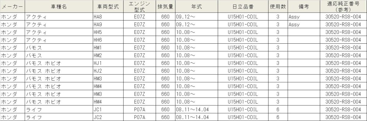 他の画像を見る 日立 HITACHI 純正品番 ホンダ 30520-RS8-004 U15H01-COIL HITACHI 日立 イグニッションコイル 3個セット 対応車種 アクティ バモス バモスホビオ 当店特別価格 ¥ 19,308 税込 会員特別価格 ¥ 19,115 税込 カートに入れる お気に入りに登録する
