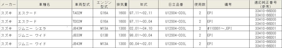 他の画像を見る 日立 HITACHI 純正品番 33410-66D00 33410-66D01 U12S04-COIL HITACHI 日立 イグニッションコイル 2個セット 対応車種 エスクード ジムニーシエラ ジムニーワイド 当店特別価格 ¥ 32,041 税込 会員特別価格 ¥ 31,721 税込 カートに入れる お気に入りに登録する
