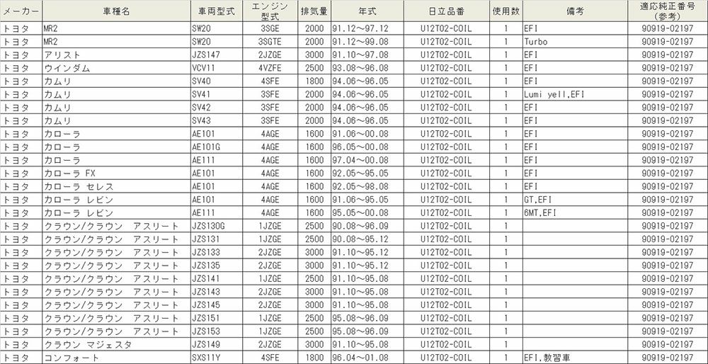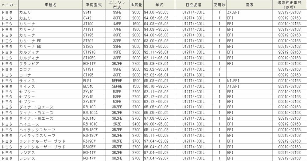 他の画像を見る 日立 HITACHI 純正品番 90919-02163 U12T14-COIL HITACHI 日立 イグニッションコイル 1個 対応車種 カムリ カリーナ カリーナED カルディナ グランビア コロナ サイノス セプター ダイナ,トヨエース ハイエース ハイラックスサーフ ランドクルーザープラド レジアス 当店特別価格 ¥ 8,851 税込 会員特別価格 ¥ 8,762 税込 カートに入れる お気に入りに登録する