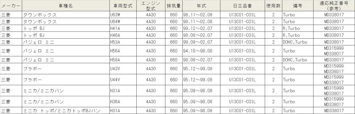 他の画像を見る 日立 HITACHI 純正品番 MD315999 MD338017 U13C01-COIL HITACHI 日立 イグニッションコイル 2個セット 対応車種 タウンボックス トッポBJ パジェロミニ ブラボー ミニカ/ミニカバン ミニカトッポ/ミニカトッポBJバン 当店特別価格 ¥ 19,598 税込 会員特別価格 ¥ 19,402 税込 カートに入れる お気に入りに登録する
