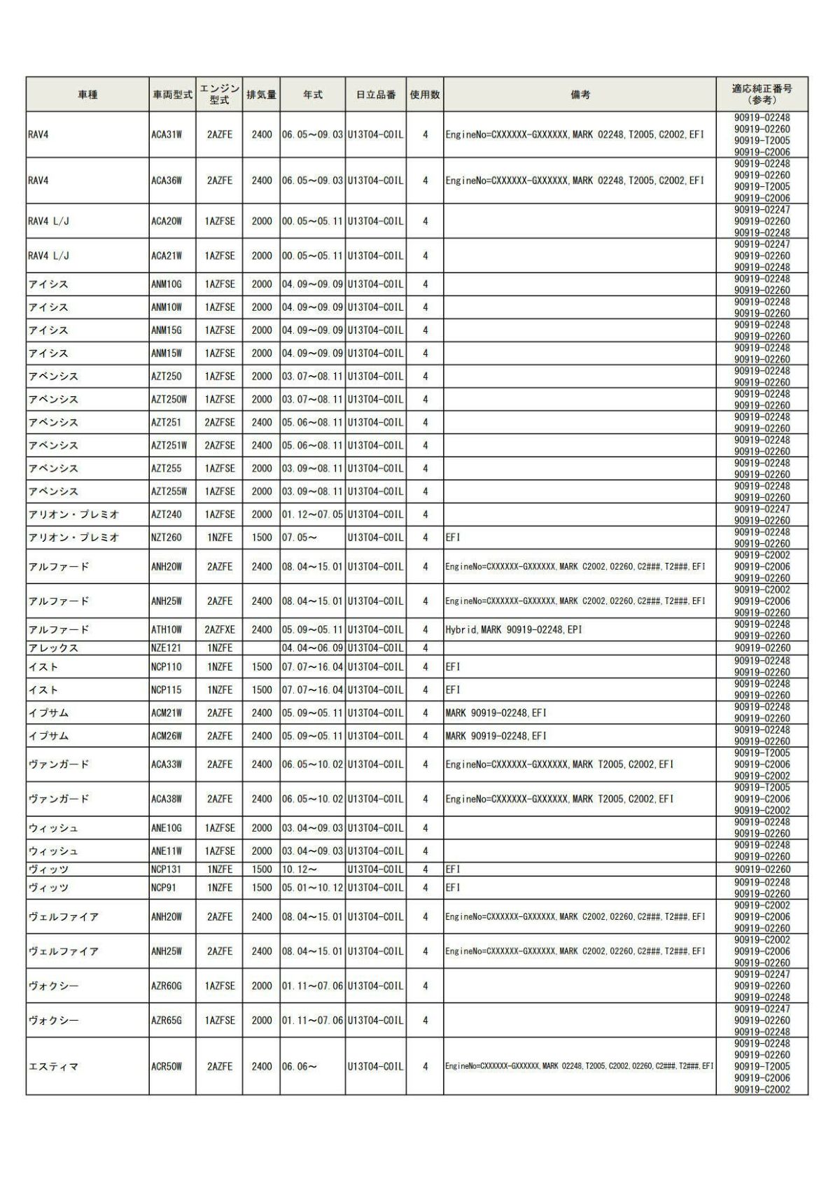 他の画像を見る U13T04-COIL HITACHI 日立 イグニッションコイル 4個セット 対応車種 RAV4 RAV4 L/J アイシス アベンシス アリオン・プレミオ アルファード アレックス イスト イプサム ヴァンガード ウィッシュ ヴィッツ ヴェルファイア ヴォクシー エスティマ 当店特別価格 ¥ 20,968 税込 会員特別価格 ¥ 20,758 税込 カートに入れる お気に入りに登録する