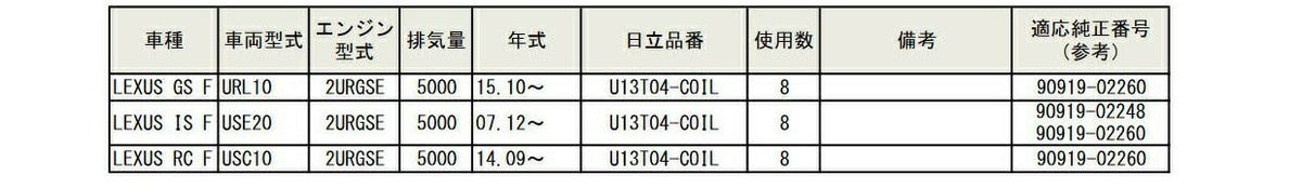 他の画像を見る U13T04-COIL HITACHI 日立 イグニッションコイル 8個セット 対応車種 LEXUS GS F LEXUS IS F LEXUS RC F 当店特別価格 ¥ 38,368 税込 会員特別価格 ¥ 37,985 税込 カートに入れる お気に入りに登録する