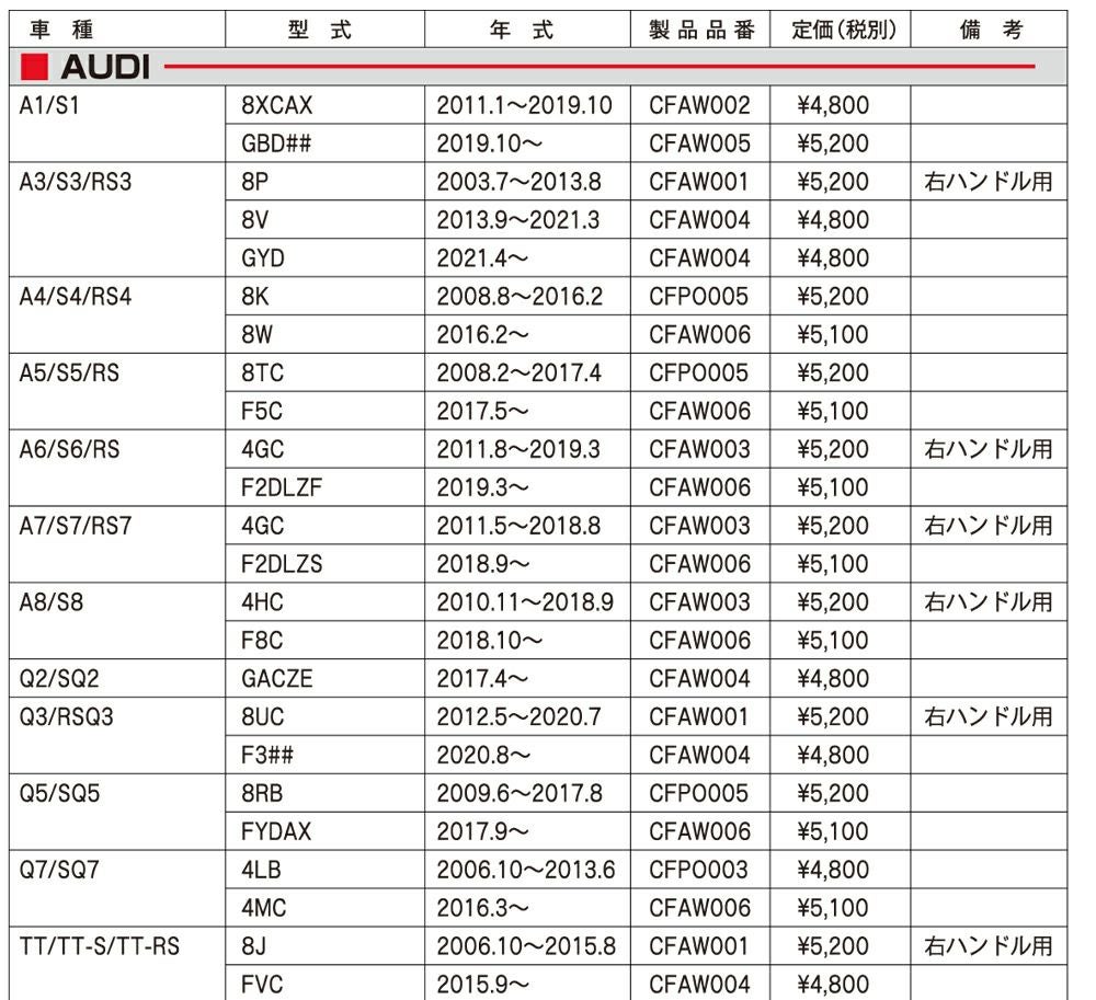 他の画像を見る HENGST ヘングスト E482L エアーエレメント エアフィルターインサート 適合車種 VW フォルクスワーゲン ビートル ゴルフ トゥーラン ティグアン Audi アウディ A3 定価 ¥ 11,000 のところ 当店特別価格 ¥ 4,261 税込 会員特別価格 ¥ 4,219 税込 カートに入れる お気に入りに登録する