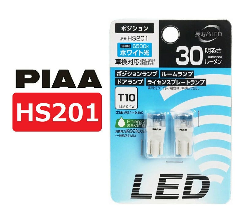 PIAA ECO-Lineシリーズ ライセンスプレートランプ用 LED PIAA ポジション/ルーム/ドア/ライセンスプレートランプ用 LED 6500K 12V 0.4W T10 ECO-Lineシリーズ 車検対応 2個入 HS201