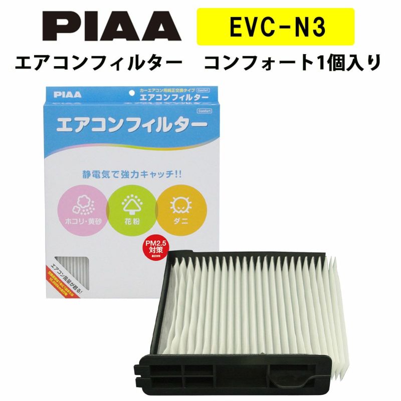 静電気で強力キャッチ!! PIAA エアコンフィルター コンフォート 1個入 [日産車用] ウイングロード・ティーダ・ノート 他 EVC-N3 ピア