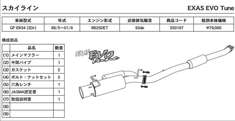 他の画像を見る 優れた排気効率と、優れた消音性能。エグザスシリーズのフラッグシップ エグザス エボチューン EXAS EVO Tune ER34 スカイライン 25GTターボ 2ドア 250107 | 最高品質ステンレス チタンテール GP スポーツ マフラー エキゾースト 車検対応 当店特別価格 ¥ 106,137 税込 会員特別価格 ¥ 105,077 税込 カートに入れる お気に入りに登録する