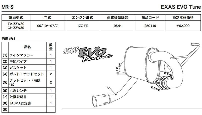 他の画像を見る 優れた排気効率と、優れた消音性能。エグザスシリーズのフラッグシップ エグザス エボチューン EXAS EVO Tune ZZW30 トヨタ MR-S TA-ZZW30 GH-ZZW30 250119 | 最高品質ステンレス チタンテール GP スポーツ マフラー エキゾースト 車検対応 当店特別価格 ¥ 69,175 税込 会員特別価格 ¥ 68,483 税込 カートに入れる お気に入りに登録する
