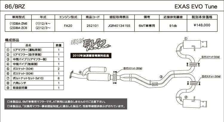 他の画像を見る 優れた排気効率と、優れた消音性能。エグザスシリーズのフラッグシップ エグザス エボチューン EXAS EVO Tune ZN6/ZC6 (JQR) トヨタ 86 / スバル BRZ 252101 | 最高品質ステンレス チタンテール GP スポーツ マフラー エキゾースト 車検対応 当店特別価格 ¥ 157,887 税込 会員特別価格 ¥ 156,307 税込 カートに入れる お気に入りに登録する
