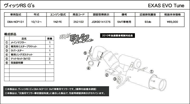 他の画像を見る 優れた排気効率と、優れた消音性能。エグザスシリーズのフラッグシップ エグザス エボチューン EXAS EVO Tune NCP131 (JQR) ヴィッツ RS G's DBA-NCP131 252102 | 最高品質ステンレス チタンテール GP スポーツ マフラー エキゾースト 車検対応 当店特別価格 ¥ 74,455 税込 会員特別価格 ¥ 73,709 税込 カートに入れる お気に入りに登録する