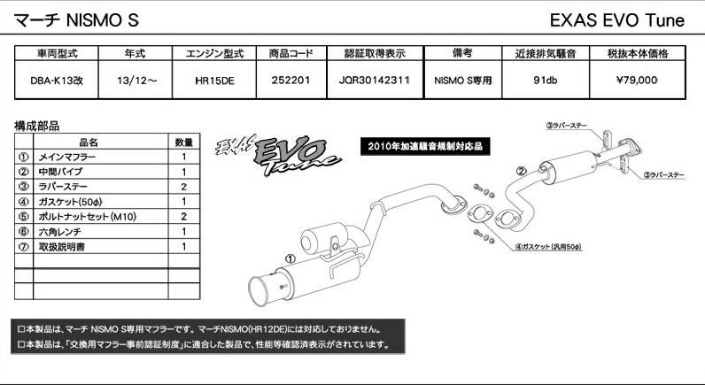 他の画像を見る 優れた排気効率と、優れた消音性能。エグザスシリーズのフラッグシップ エグザス エボチューン EXAS EVO Tune K13改 (JQR) 日産 マーチ NISMO S DBA-K13改 252201 | 最高品質ステンレス チタンテール GP スポーツ マフラー エキゾースト 車検対応 当店特別価格 ¥ 82,904 税込 会員特別価格 ¥ 82,076 税込 カートに入れる お気に入りに登録する