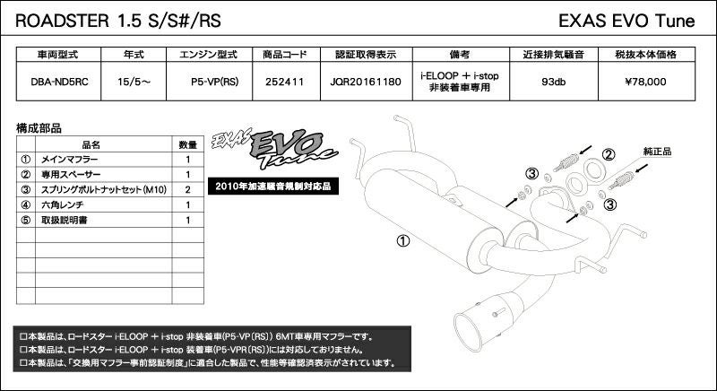 他の画像を見る 優れた排気効率と、優れた消音性能。エグザスシリーズのフラッグシップ エグザス エボチューン EXAS EVO ND5RC (JQR) マツダ ロードスター DBA-ND5RC 252411 | 最高品質ステンレス チタンテール GP スポーツ マフラー エキゾースト 車検対応 当店特別価格 ¥ 96,633 税込 会員特別価格 ¥ 95,667 税込 カートに入れる お気に入りに登録する