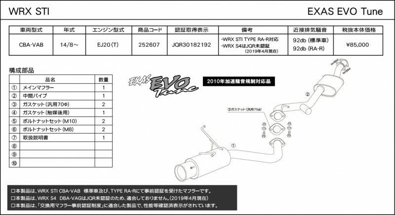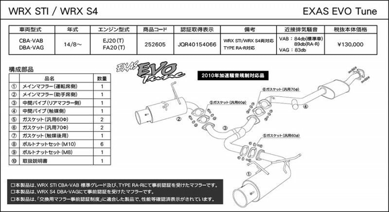 他の画像を見る 優れた排気効率と、優れた消音性能。エグザスシリーズのフラッグシップ エグザス エボチューン EXAS EVO VAB/VAG (JQR) スバル WRX STI CBA-VAB 252605 | 最高品質ステンレス チタンテール GP スポーツ マフラー エキゾースト 車検対応 当店特別価格 ¥ 145,215 税込 会員特別価格 ¥ 143,763 税込 カートに入れる お気に入りに登録する