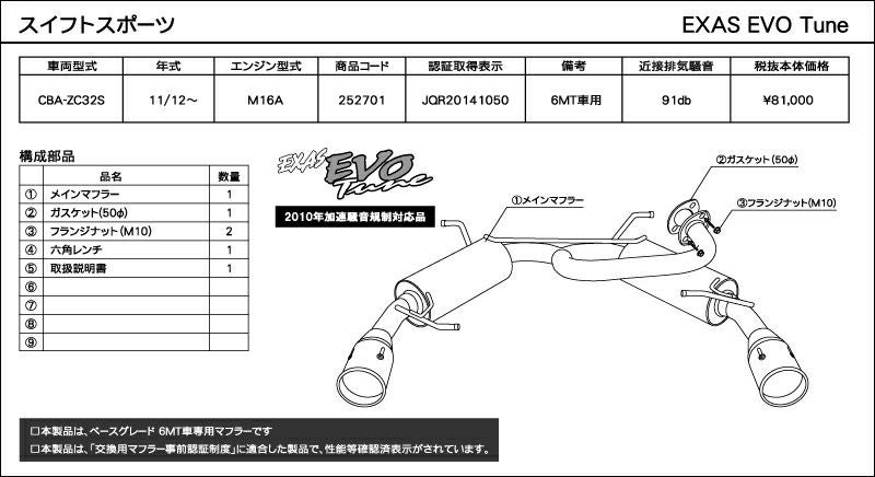 他の画像を見る 優れた排気効率と、優れた消音性能。エグザスシリーズのフラッグシップ エグザス エボチューン EXAS EVO Tune ZC32S (JQR) スズキ スイフトスポーツ 252701 | 最高品質ステンレス チタンテール GP スポーツ マフラー エキゾースト 車検対応 当店特別価格 ¥ 108,251 税込 会員特別価格 ¥ 107,169 税込 カートに入れる お気に入りに登録する