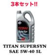 3本セット!!FUCHSエンジンオイル 3本セット!! TITAN SUPERSYN SAE 5W-40 5L FUCHS フックス オイル A602003232 エンジンオイル | 承認 ベンツ 229.3 ポルシェ A40 ルノー RN0700 RN 0710 VW 50200 50500 推奨 BMW LONGLIFE-98 FIAT 9.55535-H2 M2 N2 Z2 エンジン保護 燃費向上 モーターオイル ロングドレーン