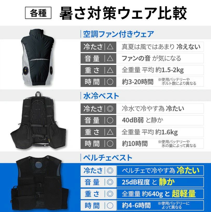 他の画像を見る 特許取得の安心モデル!冷却プレートでクールダウン!熱中症対策に コンパクトペルチェベスト & デバイスセット ペルチェ搭載 空冷 ウェア 10000mAh モバイルバッテリー付 静音 冷却プレート付き 熱中症予防 暑さ対策 ブラック 当店特別価格 ¥ 17,875 税込 会員特別価格 ¥ 17,695 税込 在庫切れ 詳細を見る お気に入りに登録する