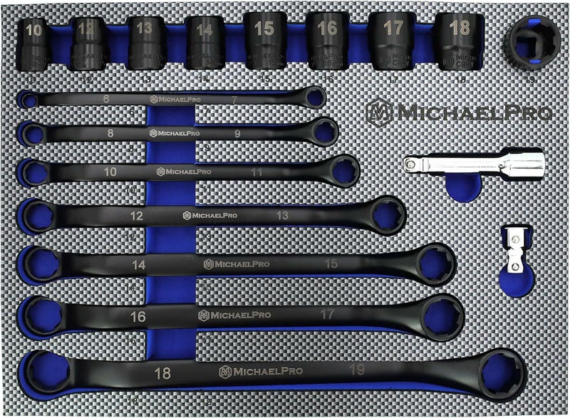 ブラックボックスエンドオフセットレンチ18個 + ソケット(メートル法)