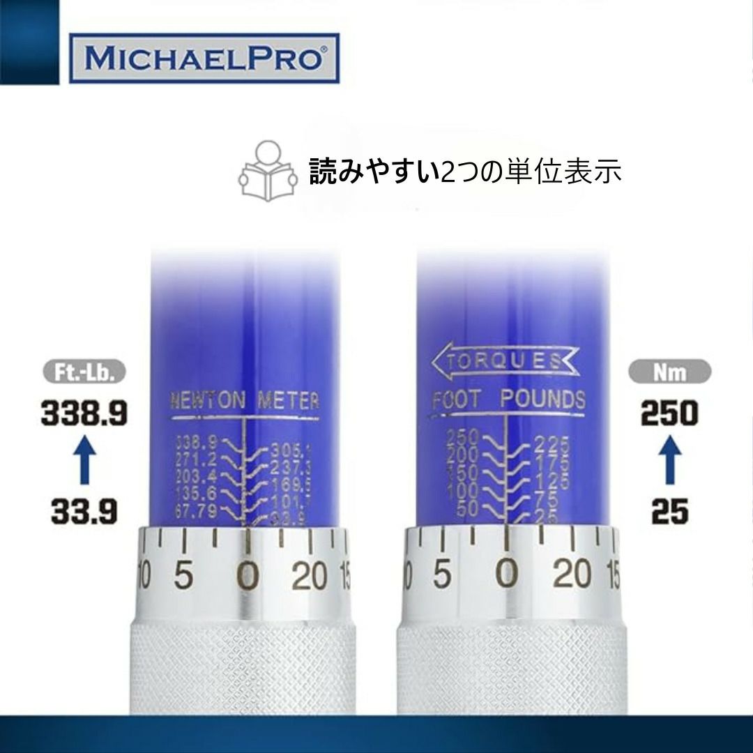 1/2インチ ドライブ クリックトルクレンチ 25-250 Ft-Lbs 33.9-338.9Nm