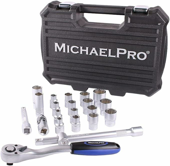 22ピース 1/2インチ 72T ラチェットレンチソケットセット メトリック ラチェットハンドル 延長ロッド ユニバーサルジョイント アダプター 収納ケース付き