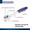 人間工学に基づいた滑り止めの 3/8 インチ ラチェット ハンドルと 1/4 インチ スピナー ハンドルは、非常に持ちやすいです。