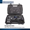新しく設計された、丈夫なブロー成形の防湿ツールボックスには、各ソケットとアクセサリ用の指定されたスロットと印刷されたサイズが付属しています。