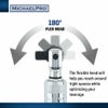 180 度フレキシブル ヘッドはどの角度でも機能し、狭いスペースにも届き、てこ作用を最適化します。