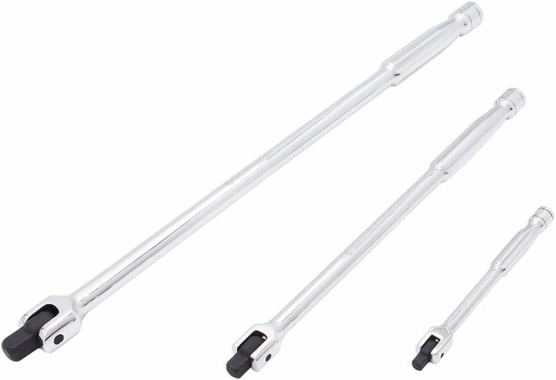 セットには、長さ 6 インチ、1/4 インチ ドライブ、長さ 12 インチ、3/8 インチ ドライブ、長さ 18 インチ、1/2 インチ ドライブのブレーカー バーが含まれます。十分なてこ作用でトルクを最大化するのに最適な長さです。