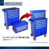 上部に小さな引き出し 3 つと大きな引き出し 3 つ、すべてスチール製。ボールベアリングの引き出しにはソフトクローズ ラッチが付いているため、閉じたときに引き出しがバタンと閉まることはありません。工業グレードで頑丈なので、ガレージや作業場のあらゆる作業に使用できます。引き出しは完全に開くので、引き出し全体にアクセスできます。