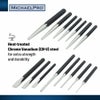 このセットには、チゼル 3 本 (3/8 インチ x 5/16 インチ x 5-1/4 インチ、1/2 インチ x 3/8 インチ x 6 インチ、5/8 インチ x 1/2 インチ x 6-1/2 インチ)、センター パンチ 2 本 (3/8 インチ x 5 インチ、7/16 インチ x 5-1/2 インチ)、ピン パンチ 5 本 (3/32 インチ x 5/16 インチ x 4-3/4 インチ、1/8 インチ x 5/16 インチ x 5 インチ、5/32 インチ x 5/16 インチ x 5-1/4 インチ、3/16 インチ x 5/16 インチ x 5-1/2 インチ、1/4 インチ x 3/8 インチ x 7 インチ) が含まれます。スターターパンチ5個: 5/32 x 3/8 x 5インチ、3/16 x 3/8 x 5インチ、1/4 x 1/2 x 6インチ、1/8 x 5/16 x 4-1/2インチ、5/16 x 5/8 x 7インチ、ゲージ。