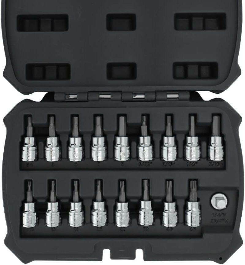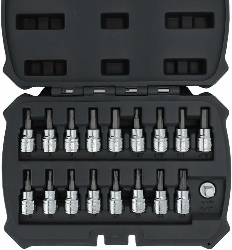 3/8インチドライブ 六角トルクスビットセット 18点セット メトリック六角ビット付属 アレンソケットセット スタービットソケットセット 収納ケース付き