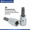 これらのビットソケットは、耐久性、強度、高トルクへの耐性を約束する最高品質のS2スチールで作られています。 崩れたりねじれたりしないため、ビットとファスナーを保護します。 ソケットは50BV30合金鋼で作られており、究極のパフォーマンスを実現します。