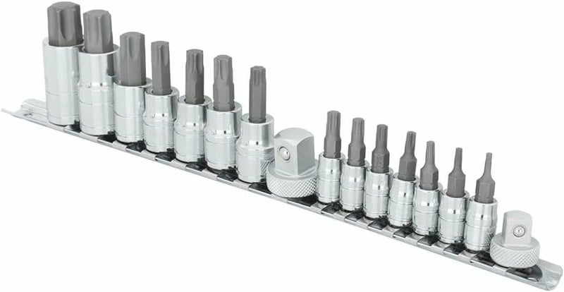 トルクスビットセット 16ピース 1/4インチ,3/8インチ,1/2インチ(T8-T70)ソケット レール付き