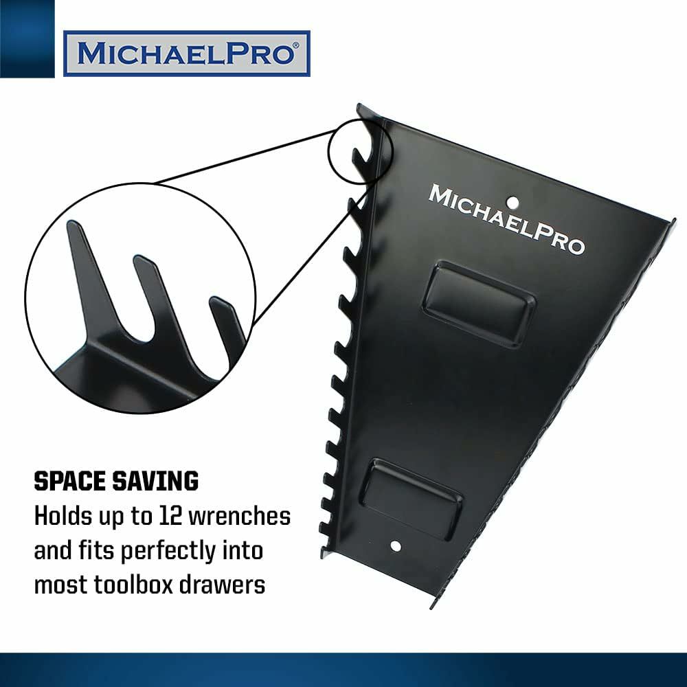 SAE およびメートル法レンチ用ヘビーデューティーレンチラック マグネットレンチオーガナイザー 12ピース マグネットレンチホルダー レンチラック ツールオーガナイザー ツール引き出し用メタルツールホルダー ツールチェスト 壁掛けレンチ収納 ツールボックスオーガナイザートレイ マイケルプロ MP014031 工具 整備用品 MichaelPro