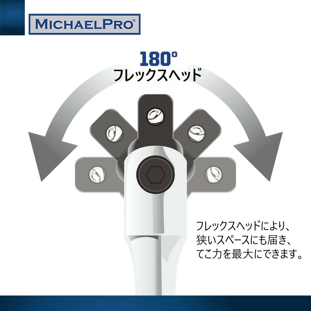 1/2 インチ ドライブ ブレーカー バーと 18 インチ ハンドルで十分なてこ作用を提供し、トルクを最大化します。 1/2インチドライブ エクステンションブレーカーバー フレックスヘッド 18インチ 回転フレックスヘッド マイケルプロ MP007003 工具 整備用品 メンテナンス 修理 DIY 自動車 軽自動車 大型車 自動車やバイクの整備に MichaelPro