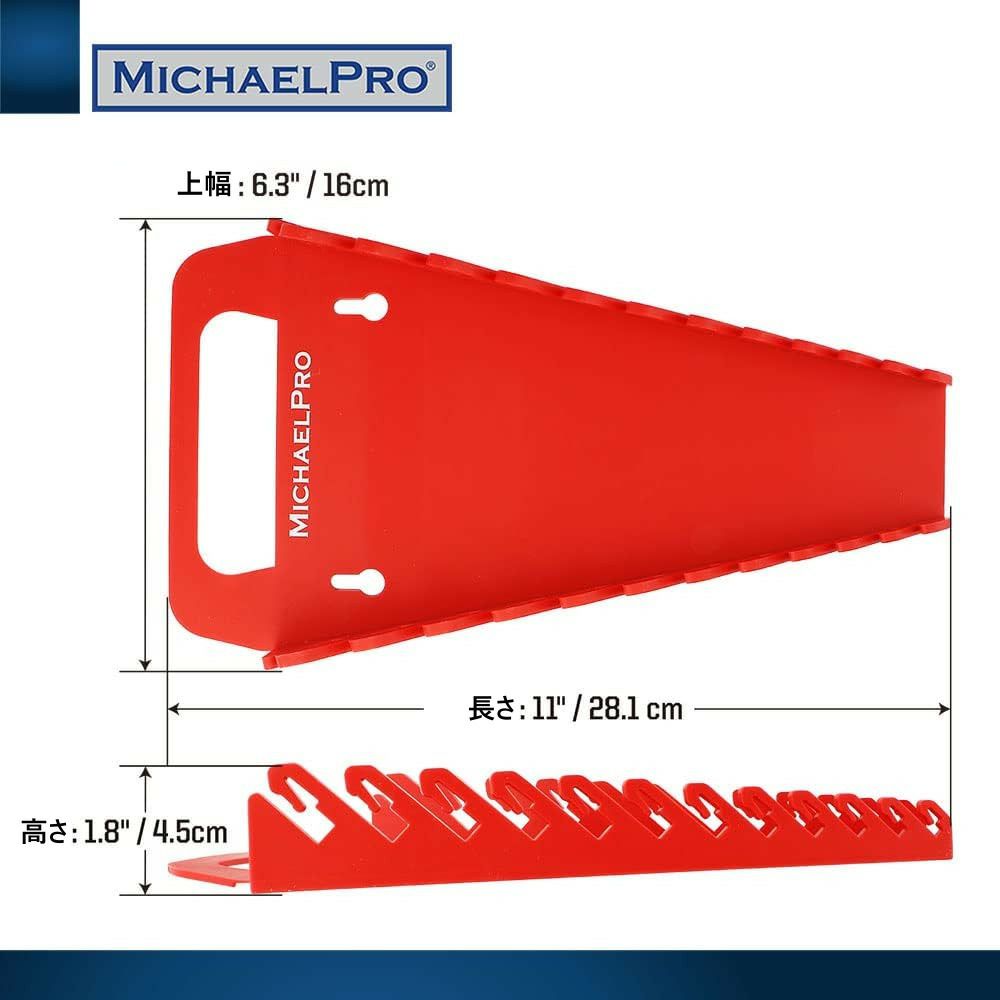 SAE およびメートル法レンチ用レンチラック ポータブル レンチホルダー 15本収納 スパナホルダー キャリーハンドル付き スパナオーガナイザー スパナラック スパナホルダー ツールホルダー ツールオーガナイザー ツールラック 赤 マイケルプロ MP014033 工具 整備用品 メンテナンス 修理 DIY 自動車 MichaelPro