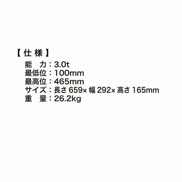 他の画像を見る アルミの軽さとスチールの強度、両方を兼ね備えたハイブリッドモデル 3t アルミジャッキ T830011L キャスター付 車 タイヤ交換 整備 工具 ガレージライフ 当店特別価格 ¥ 38,993 税込 会員特別価格 ¥ 38,604 税込 カートに入れる お気に入りに登録する