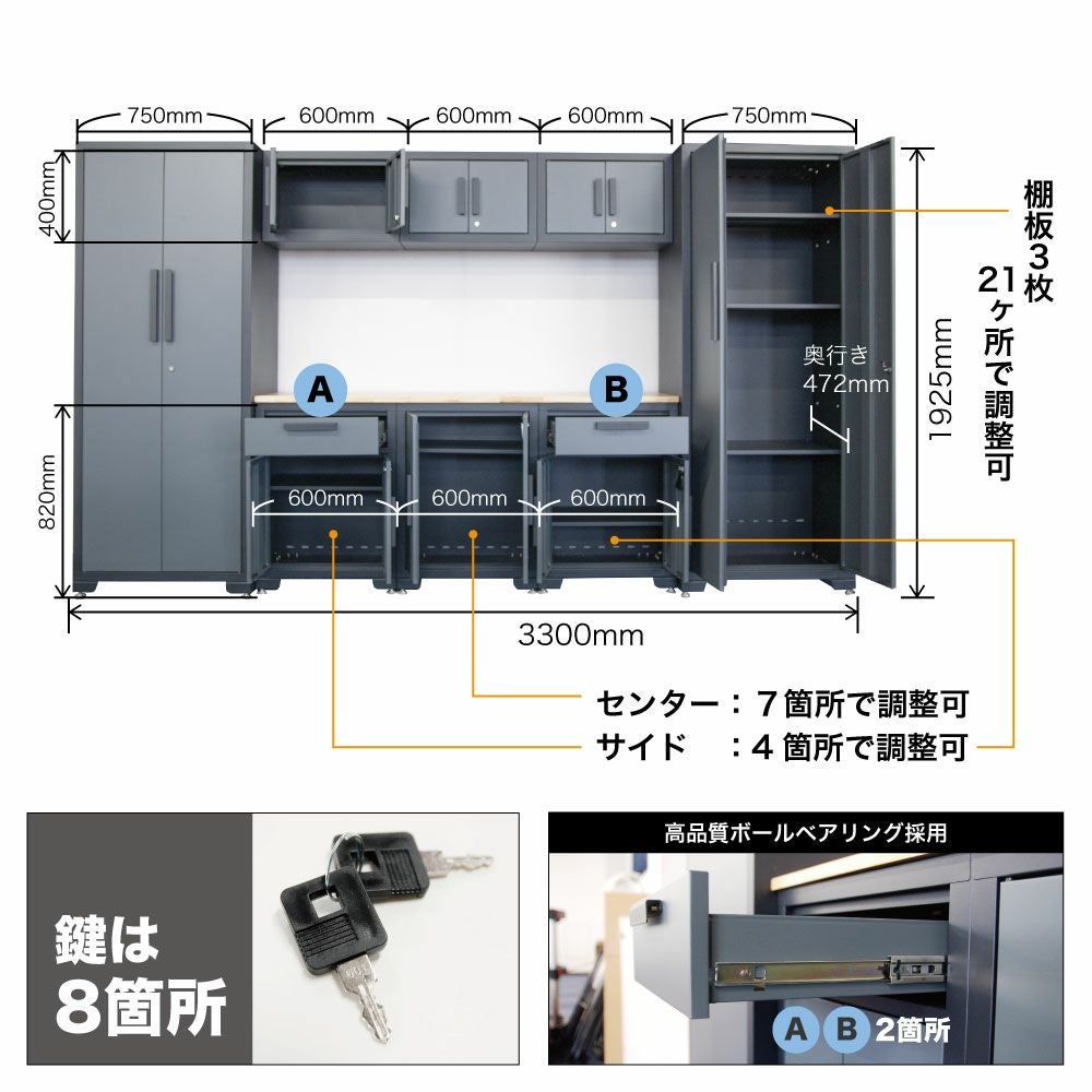 他の画像を見る セキュリティー対策の鍵付きキャビネット! ガレージキャビネット グレー TRPK30232012 収納 整備 工具 組立式 スチール 作業スペース ガレージライフ 車庫 倉庫 おしゃれ 家具 当店特別価格 ¥ 280,527 税込 会員特別価格 ¥ 277,722 税込 詳細を見る お気に入りに登録する
