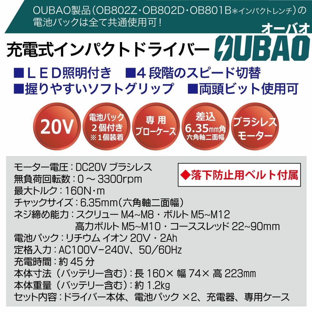 他の画像を見る 作業に便利なLED照明付き OUBAO 充電式インパクトドライバー OB802Z-2AH 充電式 インパクト ドライバー 落下防止ベルト付 工具 ガレージ用品 ガレージライフ 当店特別価格 ¥ 23,523 税込 会員特別価格 ¥ 23,288 税込 詳細を見る お気に入りに登録する