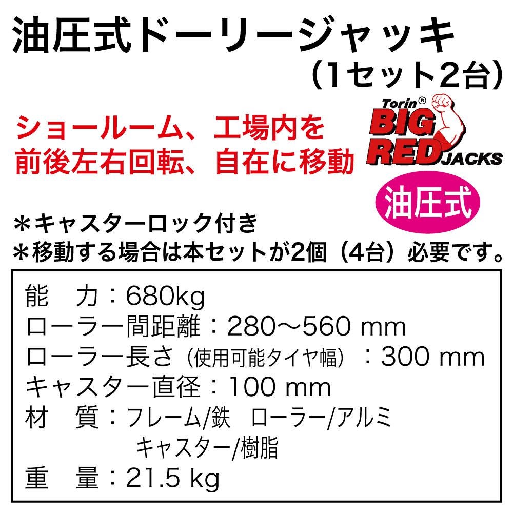 他の画像を見る 前後左右回転、自在に移動可能です 油圧式ドーリージャッキ(1セット / 2台) TRA9012L-2 ジャッキ キャスター付 工具 ガレージ用品 当店特別価格 ¥ 61,814 税込 会員特別価格 ¥ 61,197 税込 詳細を見る お気に入りに登録する