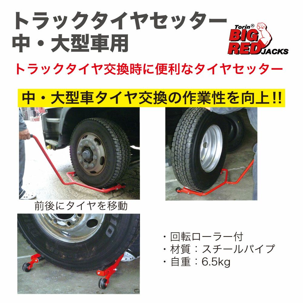 他の画像を見る 中・大型車タイヤ交換の作業性を向上!! トラックタイヤセッター 中・大型車用 TRX01506 回転ローラー付 組立式 タイヤ交換 タイヤセッター 工具 ガレージ用品 当店特別価格 ¥ 9,782 税込 会員特別価格 ¥ 9,684 税込 詳細を見る お気に入りに登録する