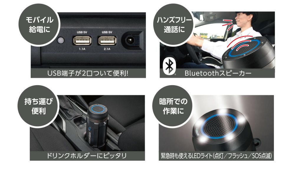 他の画像を見る 急なバッテリー上がりも安心! セルスター LJP-9600 多機能ジャンプスターター モバイルバッテリー Bluetoothスピーカー LEDライト 20lm 容量9600mAh 12V車専用 Cellstar リチウムイオンジャンプスターター 簡単 キャンプ 作業灯 ハンズフリー 通話 緊急時にも 当店特別価格 ¥ 21,219 税込 会員特別価格 ¥ 21,006 税込 カートに入れる お気に入りに登録する